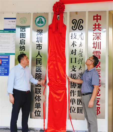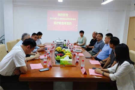 随后,在与会领导和嘉宾的共同见证下,在一片热烈的掌声中,深圳市第三人民医院副院长钟林与深圳国丹集团执行总裁王殿平代表两家医院共同为双方结成医联体合作单位揭牌,标志着双方正式建立紧密型合作关系。